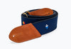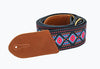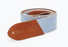 The ‘Back in Black’ guitar strap features a black denim upper, genuine leather ends with skull emboss, a metal tri-glide adjustment and a comfortable faux-leather backing. Handmade and crafted with care.